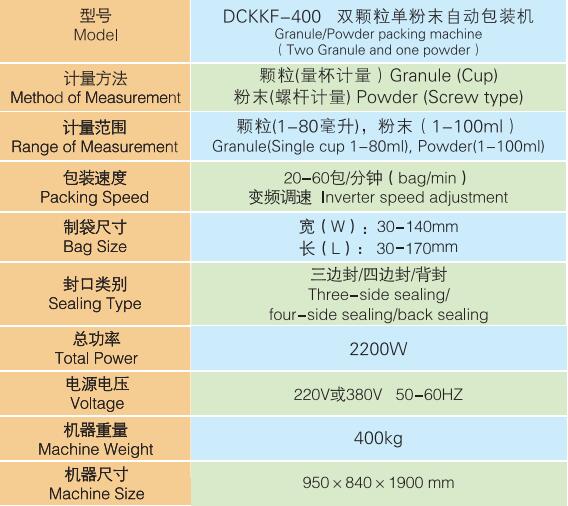 DCKKF-400雙粉末單粉末自動包裝機(jī)