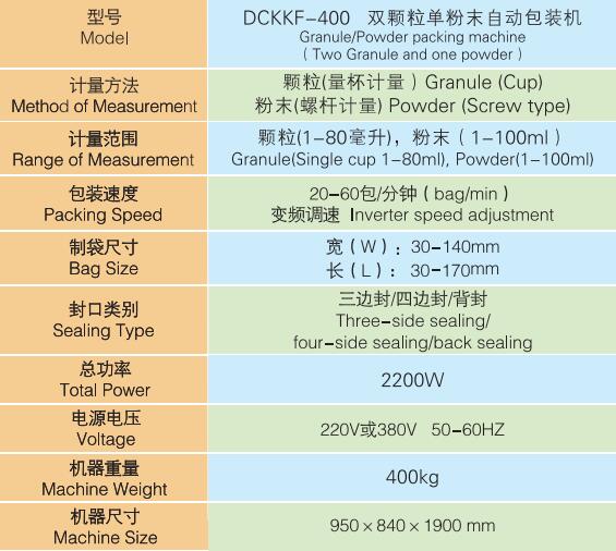 DCKKF-400雙顆粒單粉末自動包裝機