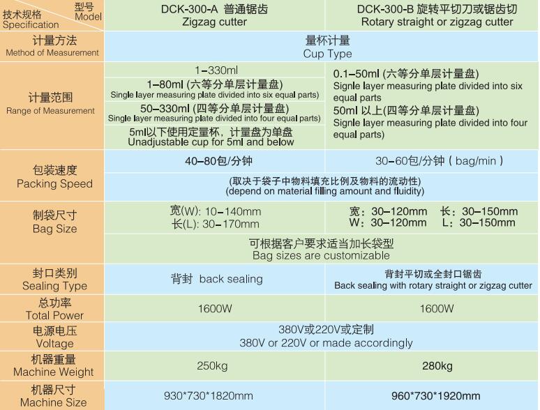 DCK-300-A/ DCK-300-B 背封顆粒包裝機